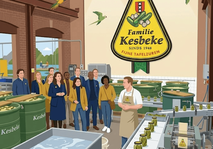 Op 24 juni bezoeken we Kesbeke Fijne Tafelzuren: een van de weinige productiebedrijven die nog midden in de stad zit, al meer dan 75 jaar. We worden ontvangen in de bedrijfskantine, horen het verhaal achter het bedrijf, lopen door de fabriekshal, langs de productieruimtes, de etiketteerafdeling en het magazijn. We eindigen in hun eigen winkel tegenover de fabriek.